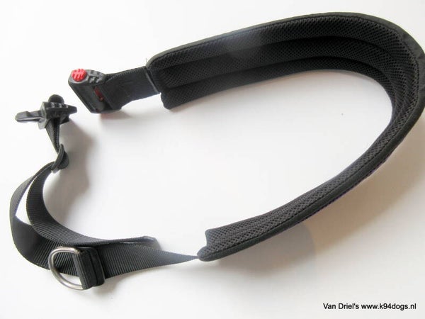 comfortabele brede en goed gevoerde gordel om de hond aan te bevestigen. Ideaal voor Canicross, Joggen , handfree wandelen of canicross. Verstelbaar en voorzien van sterke gelaste D-ring en extra sterke beveiligde gordelsluiting. zwarte gordel met leuke print of geheel zwart. zie beschikbare maten en foto's