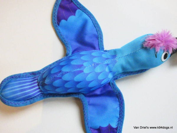 leuke felgekleurde vogel met krakende vleugels en piep. maat 35 cm lang en met uitgestrekte vleugels ook 35 cm breed