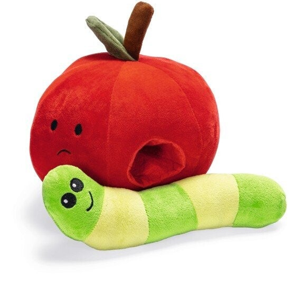 Hide and seek appel met worm 2 in 1 pluchespel voor pup