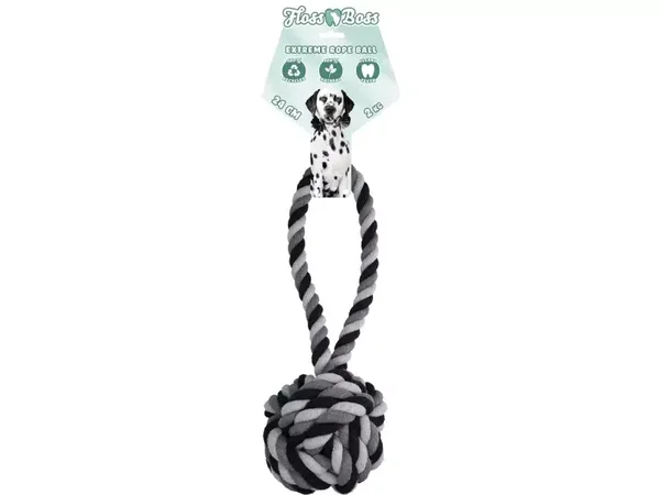 Voor de allergrootste, allersterkste hebben wij deze jumbo touwbal om samen aan te sjorren. gemaakt van een touw van wel 8 cm dik en de doorsnee van de knoopbal is ca. 20 cm De hele lengte is ongeveer 60 cm en daar kan jouw rottweiler, bull of staff echt heel veel plezier aan beleven !