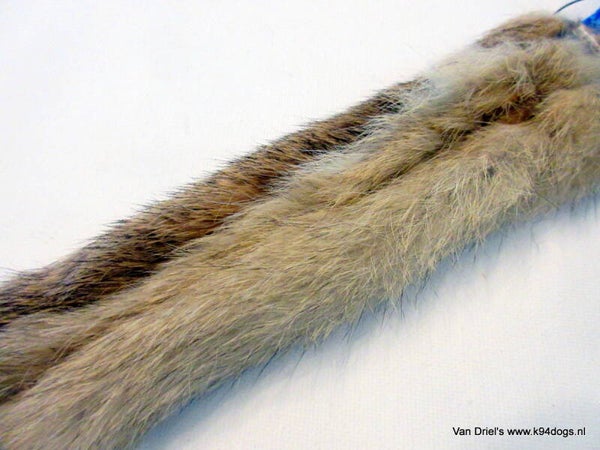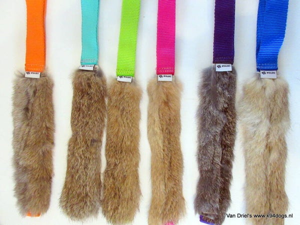 100% konijnenvacht goed doorstikt op een handgreep. geweldig voor de hondensport. motiveer het zoeken en speuren of gebruik het als ultieme beloning. het vachtgedeelte is 20 cm lang aan een handgreep van 17cm. iedere vacht is anders van kleur varierend van bruin tot grijs maar allemaal wildkleur zonder wit. de handgrepen zijn er in diverse kleuren.