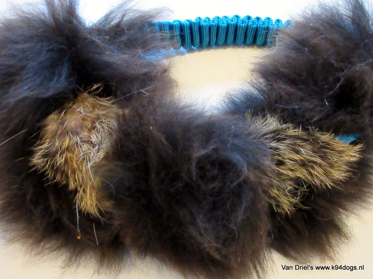 Training en beloning speeltje in combi van 100% konijn en schapenvacht aan een rond doorstikte bungee ring die jouw hond gemakkelijk kan dragen. het favoriete zoek en apporteer speeltje met geur. een echte beloning met een combinatie van dikke konijn en schapen vacht van het merk Zayma. Niet om op te kauwen, bedoeld voor training samen met de baas.