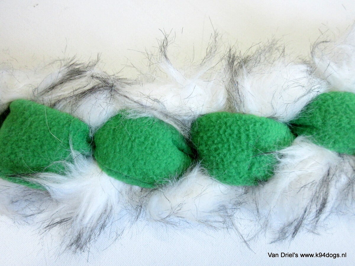 combinatie van fleece en een fur vacht aan een steke bungee om samen aan te trekken. leuk spel voor hond en baas. lengte 75 cm Merk Doglem