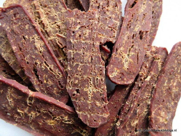 paardenvlees repen van 92% vlees bereid met zoete aardappel. mooi puur product dat je kunt gebruiken op de training. makkelijk in stukjes te breken en niet vettig in jouw jaszak.