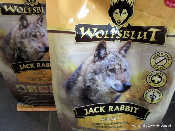 Wolfsblut premium dog food Jack rabbit. volledige maaltijd brokken met konijn, zoete aardappels en kruiden die het imuunsysteem stimuleren. een smakelijke granenvrije maaltijdbrok die alles bevat wat jouw hond nodig heeft. hypoallergeen. inhoud 2kg.