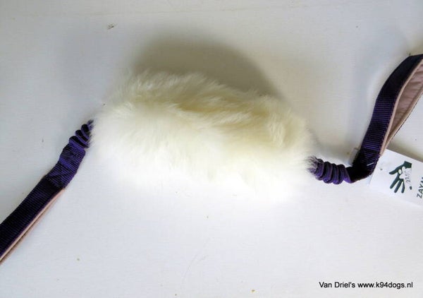 100% schapenvacht motivatie speeltje met 2 bungee handgrepen van het merk zayma. keuze uit mooie dikke witte, moeflon of bruine schapenvacht aan een assorti bungee van totaal 70cm. het vachtgedeelte is ca. 24x10 * natuurlijke vacht kan verschillen van dikte/breedte