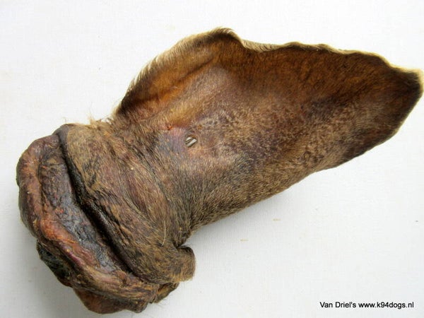 Runderoren met vacht en een dik vleesstuk afkomstig van Nederlandse runderen. een premium produkt uit Friesland. De vacht bevorderd een goede darmfunctie en reinigd het gebit. De runderoren hebben een stevige bite, zijn vetarm en is een verantwoorde keuze voor elke hond. Door het natuurlijke droogproces blijven de smaak en voedingsstoffen optimaal behouden, zonder enige toevoegingen maar het belangrijkste.. honden vinden het heerlijk om hier uren op te kauwen en dat werkt stressverlagend.